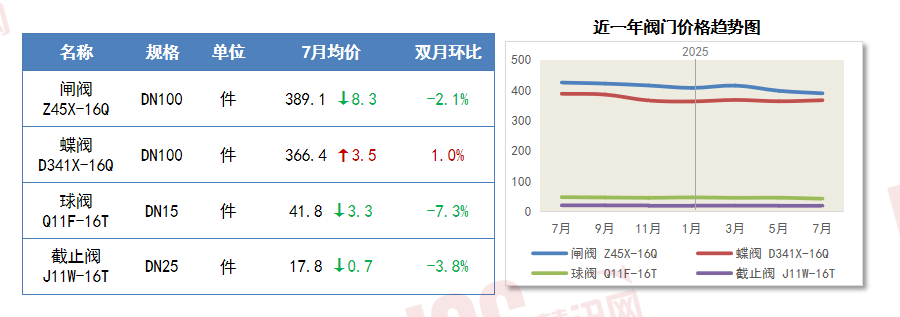 7月,建建阀门全体价钱呈弱势运转态势。住建委发布关于进一步加强衡宇市政工程预拌混凝土质量办理工做的通知。6-7月均价呈小幅下滑态势。国际商业需求连结增加。对价钱的支撑力不脚。7月,保守行业产能出清,上步履力不脚。衡宇新开工面积下降20.0%,